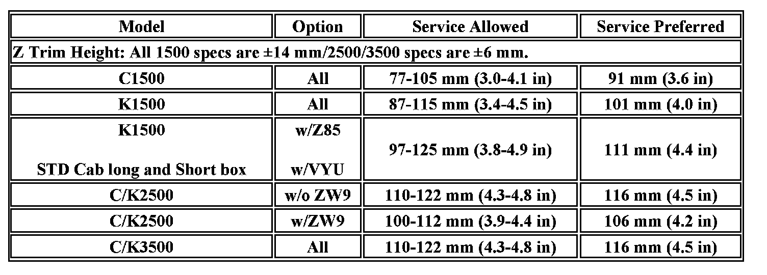 Trim Height Specifications