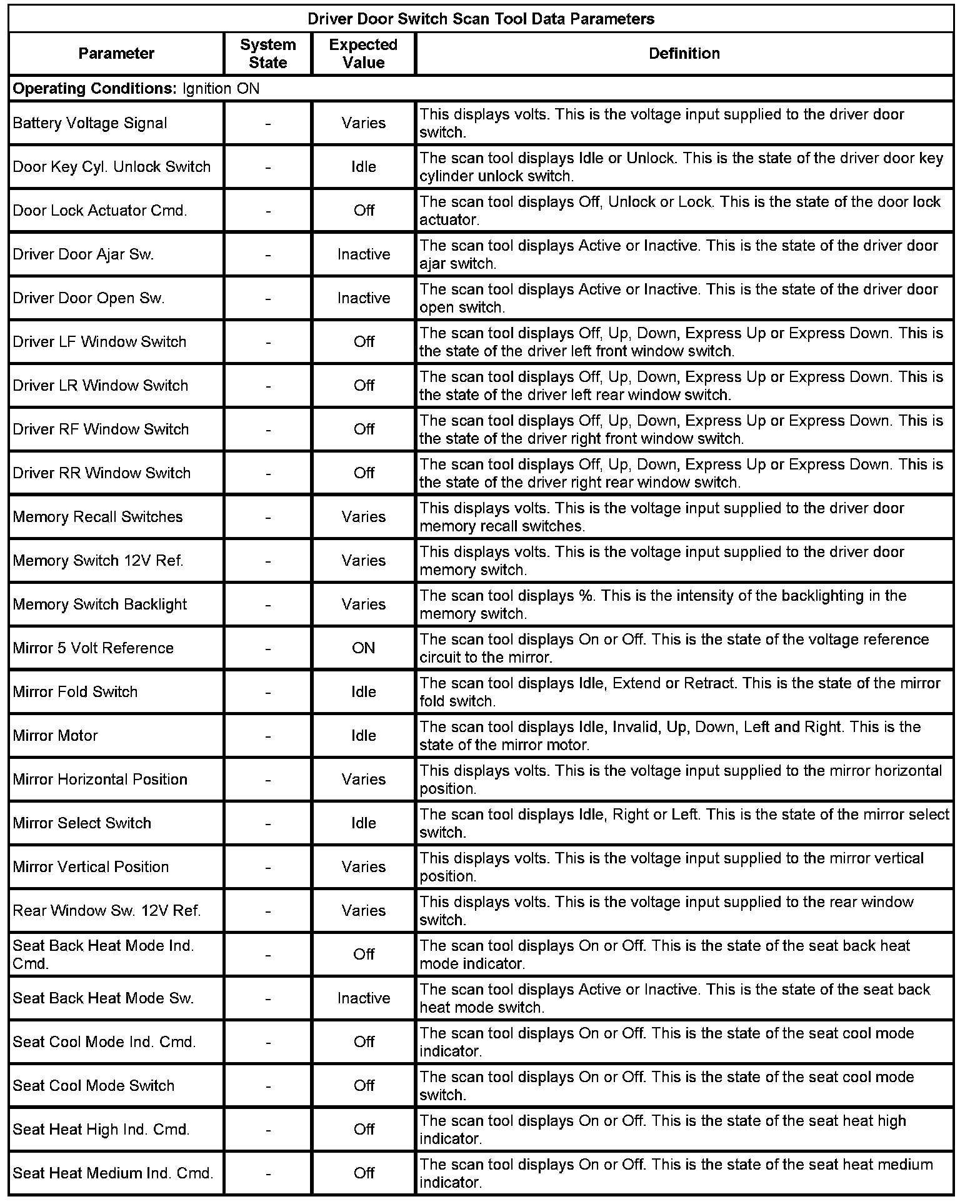 Door Lock Control Module Scan Tool Information (Driver Door Switch)