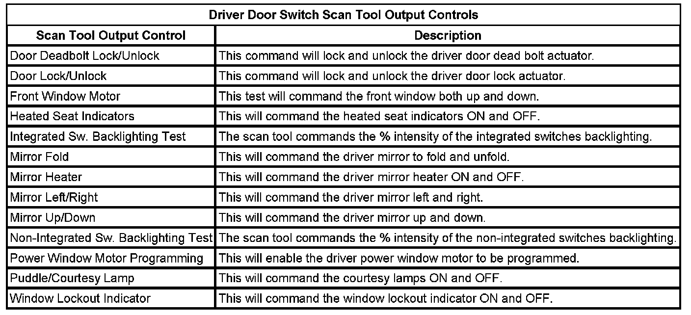 Door Lock Control Module Scan Tool Information (Driver