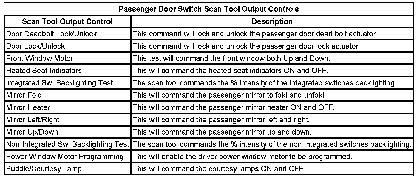 Door Lock Control Module Scan Tool Information (Passenger Door Switch)