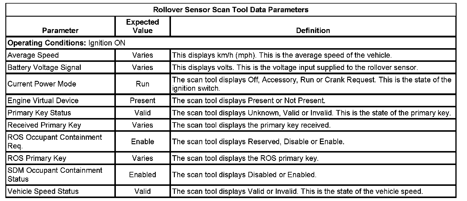 Inflatable Restraint Vehicle Rollover Sensor Scan Tool Information