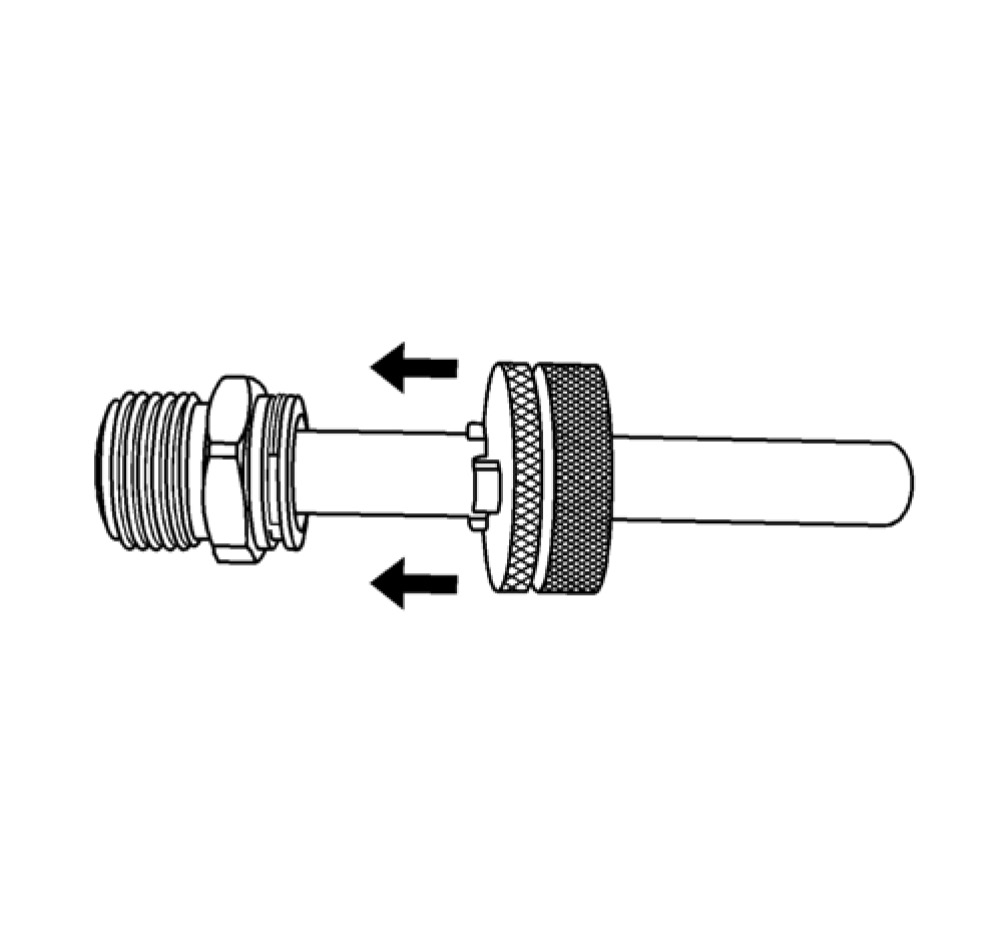 Note: Rotate the DT-41623-B 3/8 inch line quick release tool to engage the TOC pipe fitting's retainer slots.
