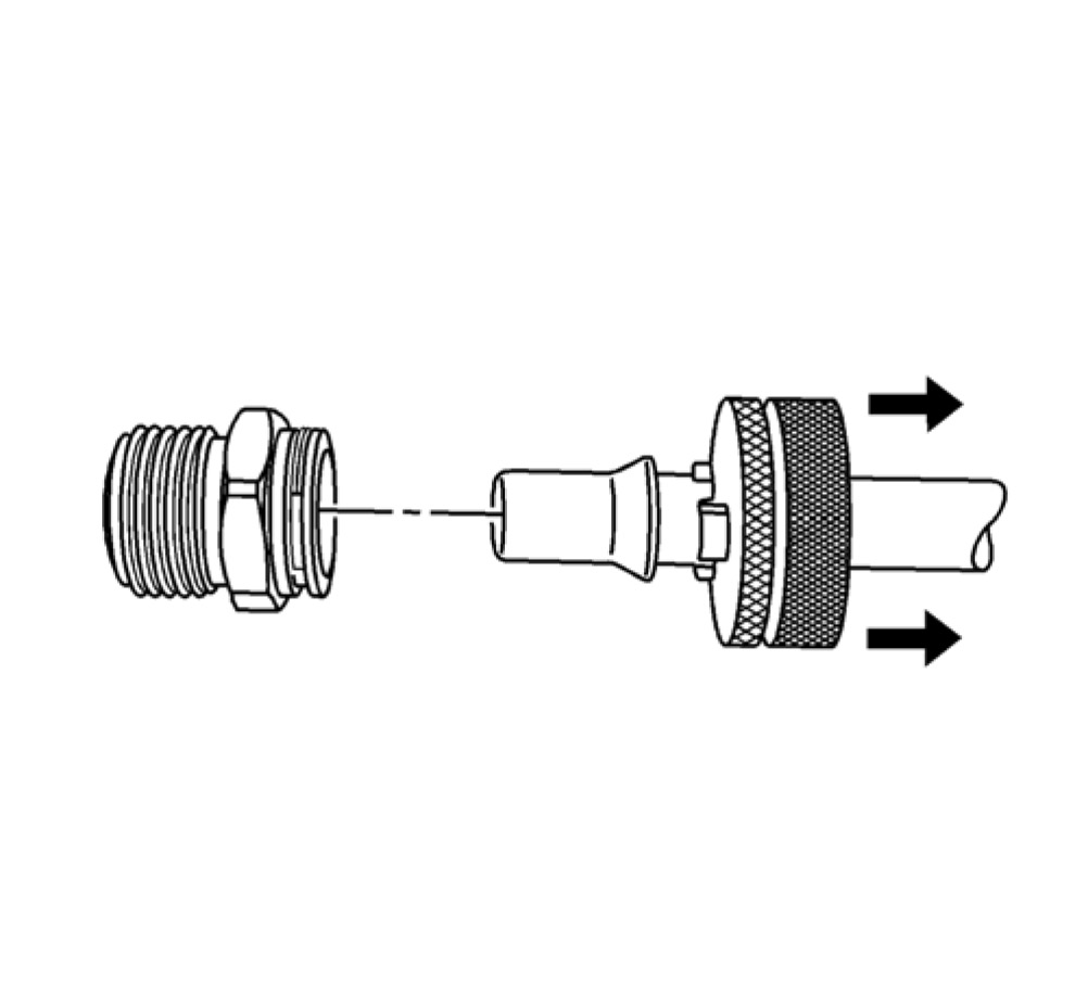 2. To ensure the cooler line is properly installed, give the cooler pipe a gentle pull.