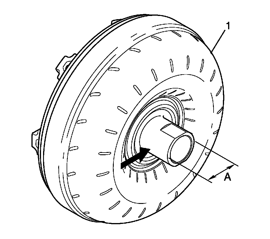 1. Measure the OD of torque converter hub (1) at dimension A, the bushing wear area.