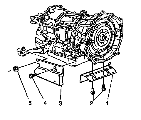 4. Remove the side heat shield bolt (4) and nut (5).