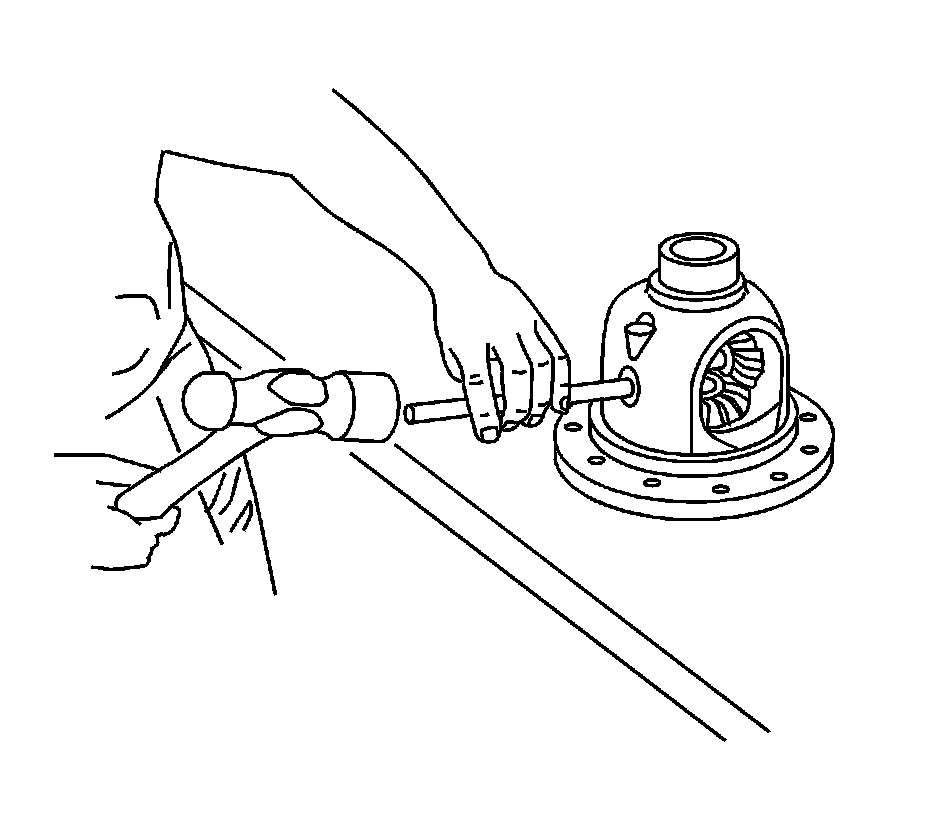 2. Drive the pinion shaft through the differential case using a hammer and the brass drift.