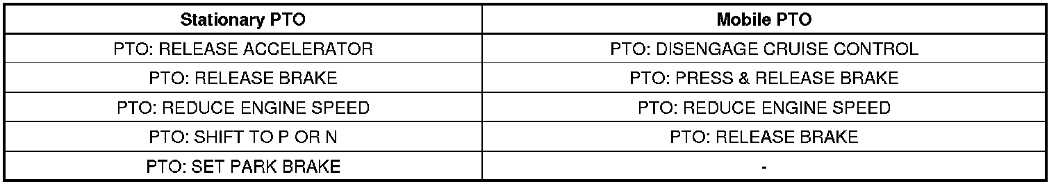 The mobile PTO mode will also disengage if the following conditions are detected by the vehicle modules: