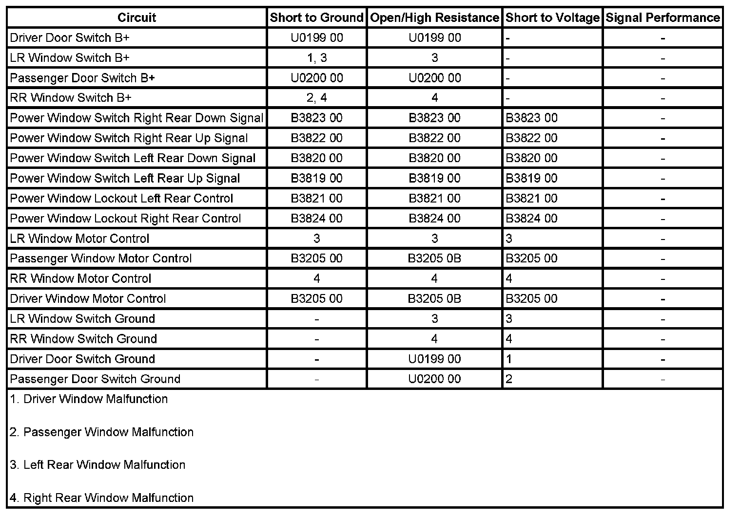 ^ If either rear passenger power window is inoperative, refer to Rear Passenger Window Malfunction.