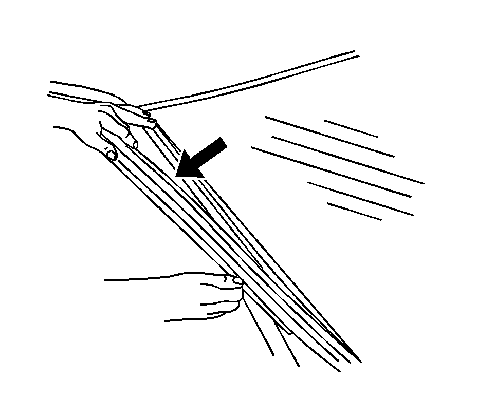 Important: The upper window reveal molding fills the cavities between the body and window. If the reveal molding is stretched or damaged, replace the molding.