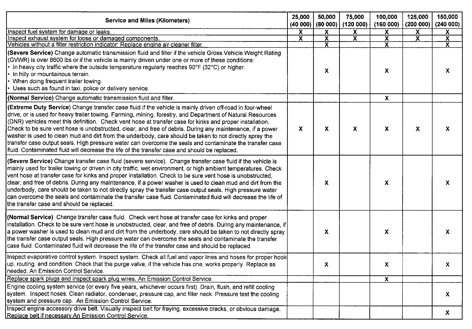 service (I or II) after the indicated miles (kilometers) shown for each item.