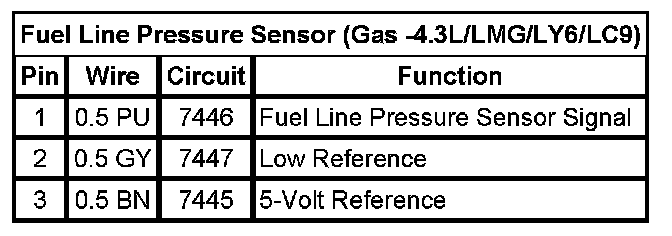 Fuel Line Pressure Sensor (Gas -4.3L/LMG/LY6/LC9)