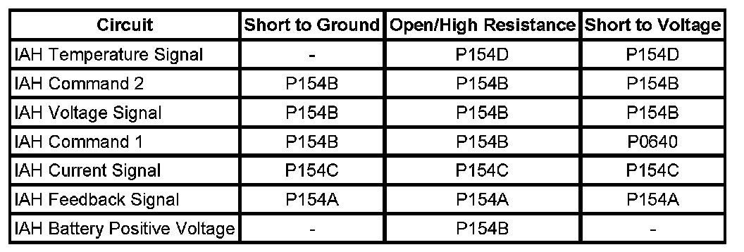 1. Test the IAH feedback signal circuit for an open, a short to ground, or a short to voltage.