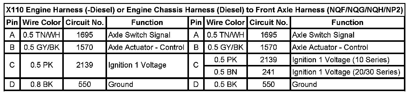 X110 Engine Harness (-Diesel) or Engine Chassis Harness (Diesel) to Front Axle Harness (NQF/NQG/NQH/NP2)