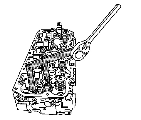 2. Remove the valve rocker arm shaft, valve bridges, and pushrods for the cylinder head being serviced. Refer to Valve Rocker Arm, Shaft, and Push Rod Replacement (Service and Repair) .