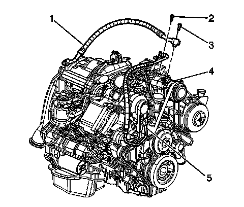2. Remove the suction hose mounting bolt (3) from the A/C compressor.