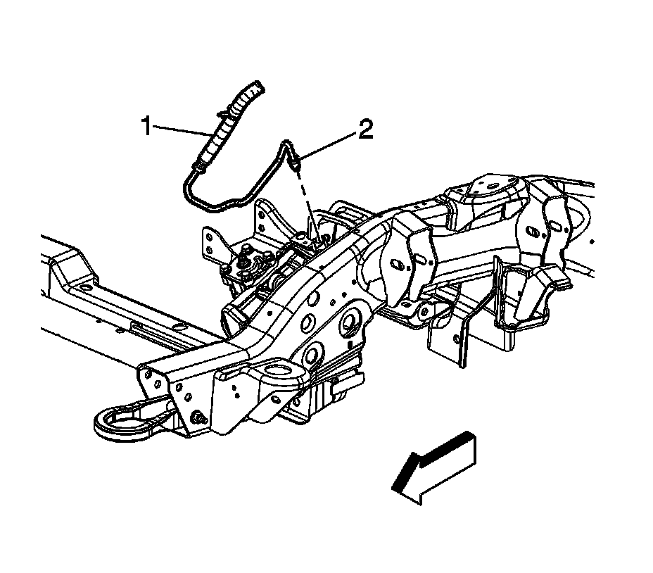 2. Connect the power steering gear outlet hose (2) to the steering gear (1).
