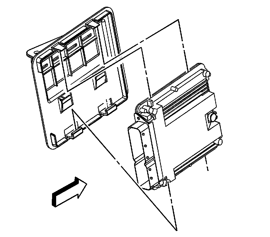 2. Push the ECM towards the bracket until the upper edge of the ECM snaps into place.