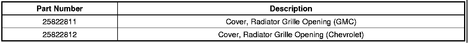 If the customer does not have a cover, obtain and install the grille opening section ONLY , GM P/N 25822811 (GMC) or GM P/N 25822812 (Chevrolet).