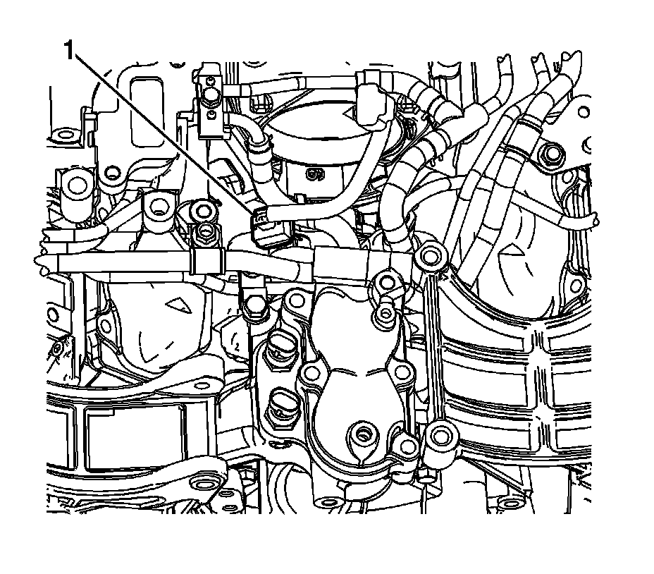 5. Disconnect the engine coolant temperature (ECT) sensor electrical connectors (1) and reposition the harness branches.