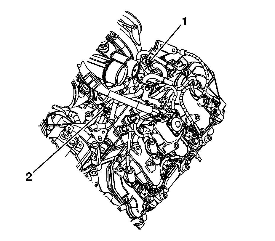 5. Connect the engine wiring harness electrical connector (2) to the glow plug control module.