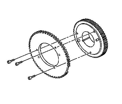 5. Remove the crankshaft reluctor to oil pump drive gear bolts.