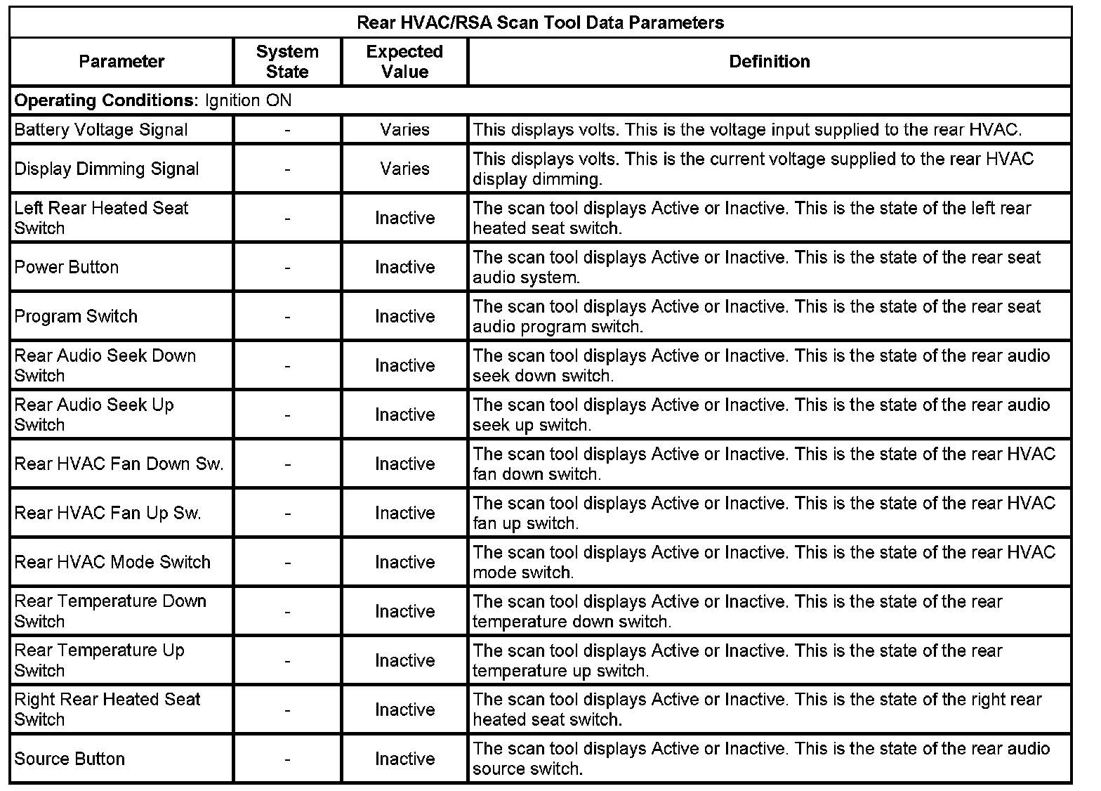 Auxiliary Heater and Air Conditioning Control Module Scan Tool Information