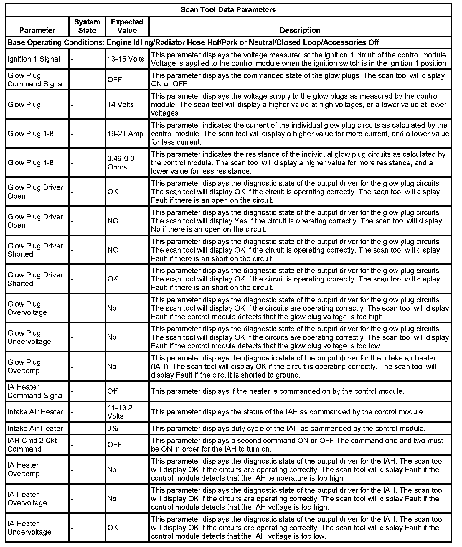 Glow Plug Control Module Scan Tool Information