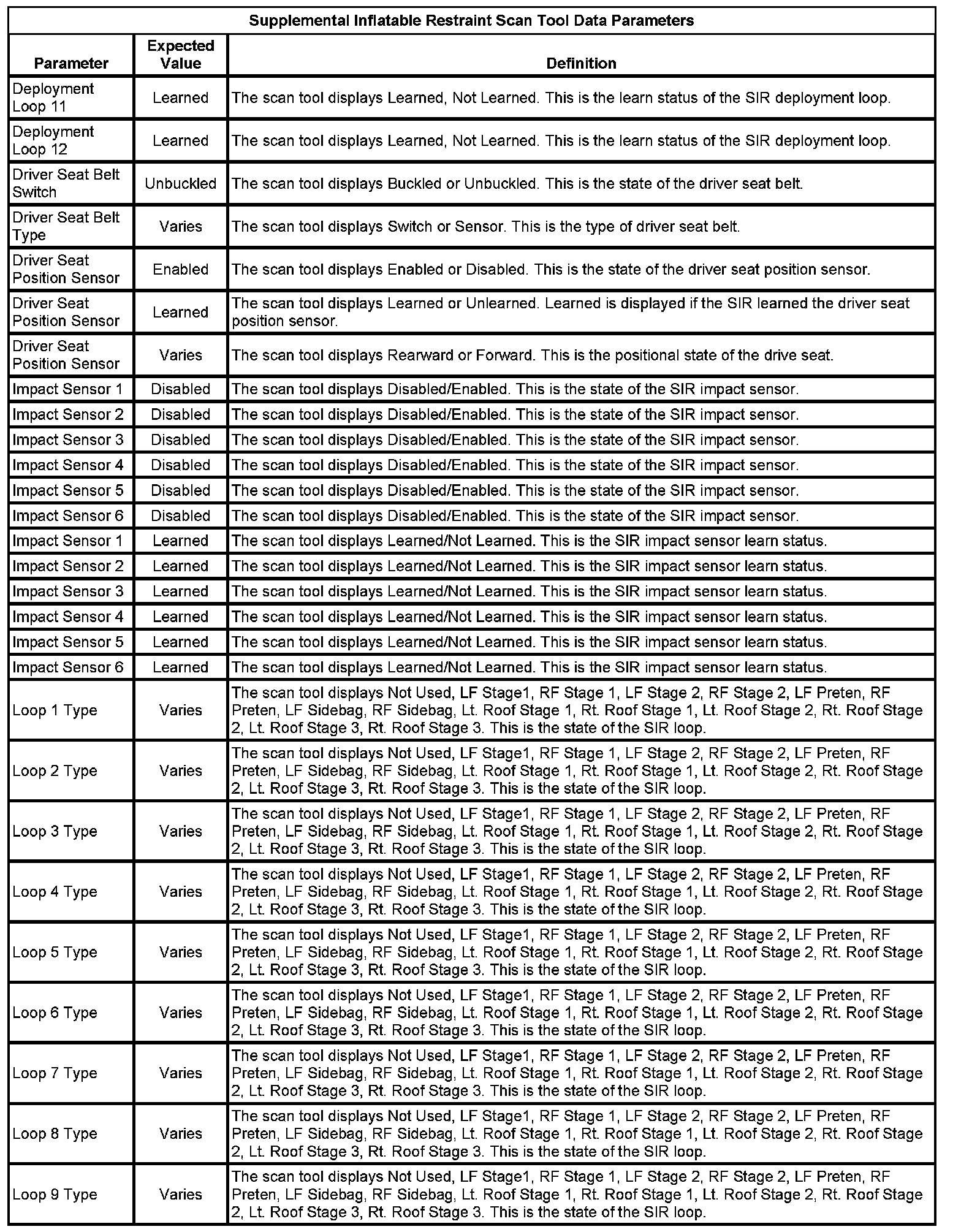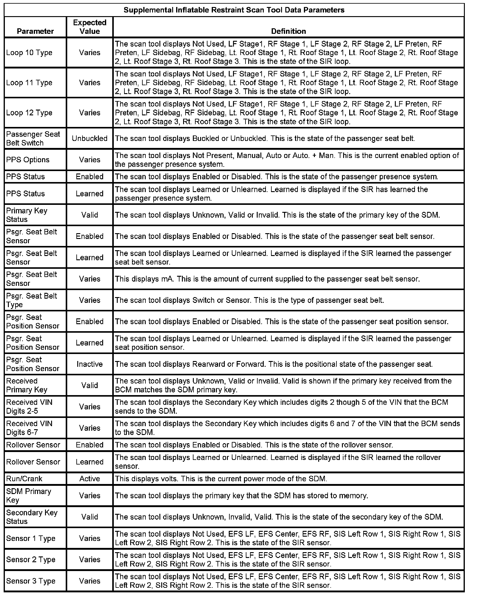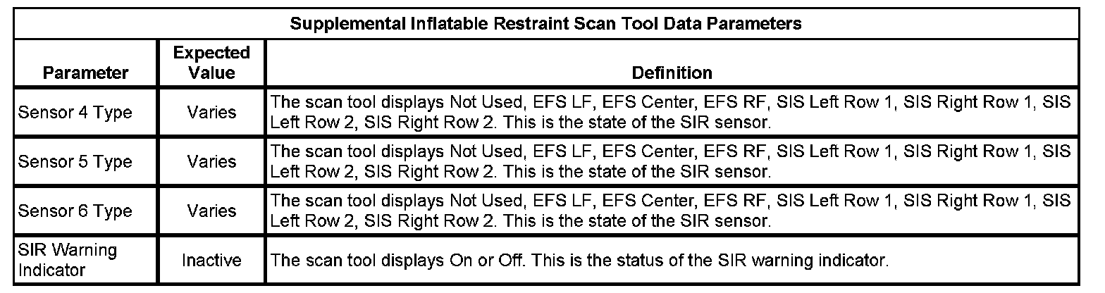 Inflatable Restraint Sensing and Diagnostic Module Scan Tool Information