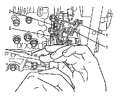 Important: The solenoid retainers for shift solenoid 3 (SS3) and shift solenoid 2 (SS2) also retain tabs on the wiring harness U-channel. The solenoids will remain in position even after the solenoid retainers are removed.