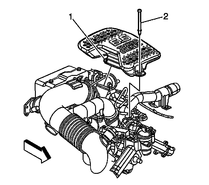 1. Loosen the intake manifold cover clamp (1) at the resonator.
