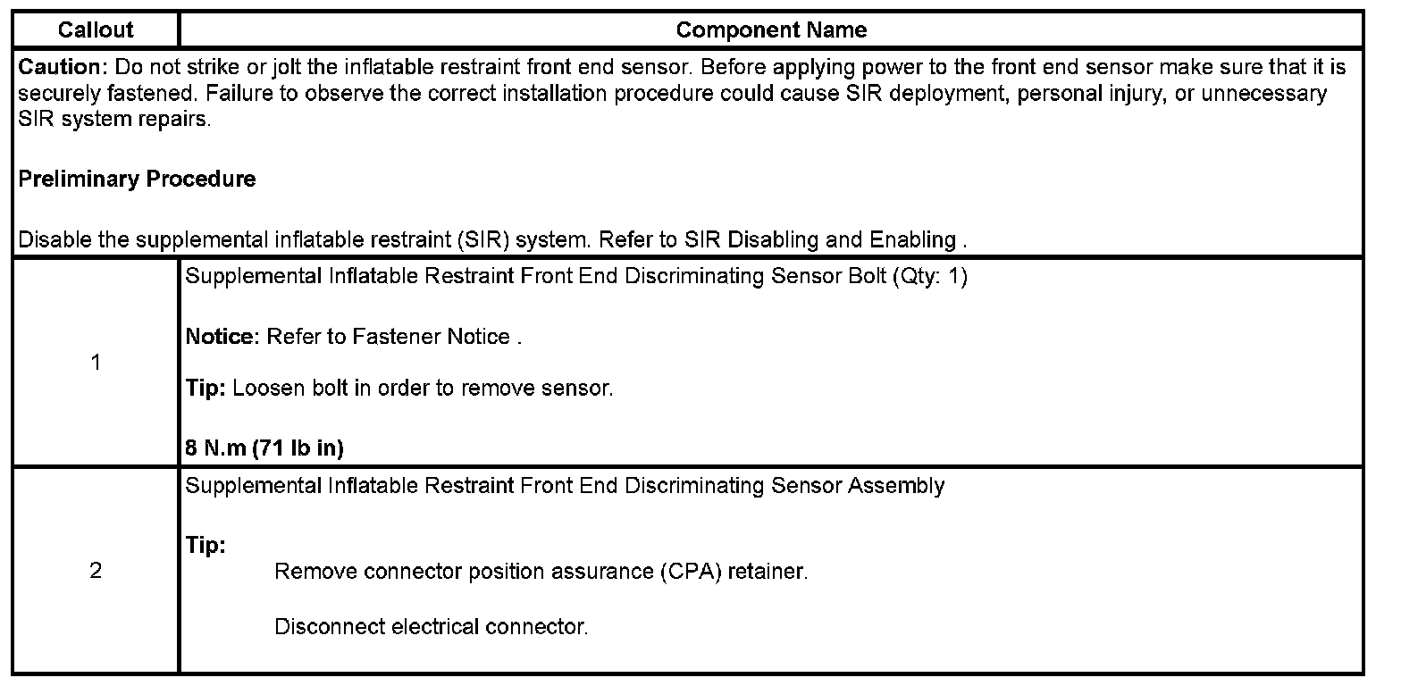 Inflatable Restraint Front End Sensor Replacement (2500, 3500)