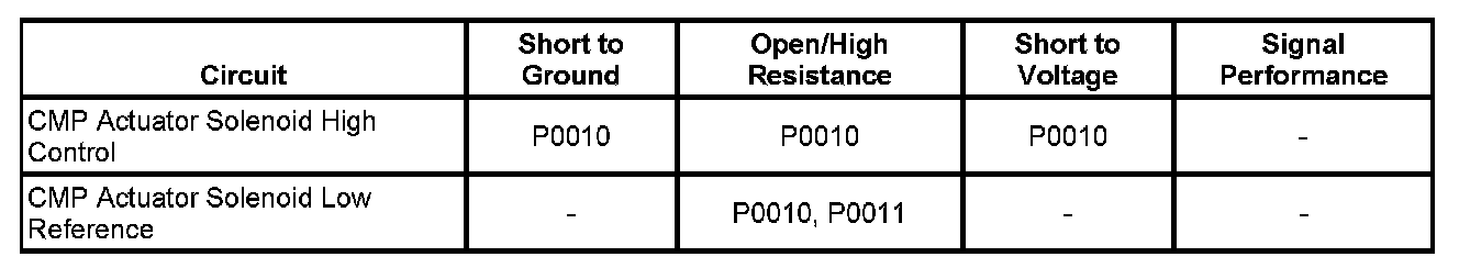 - Camshaft Position (CMP) Actuator Solenoid Control Circuit