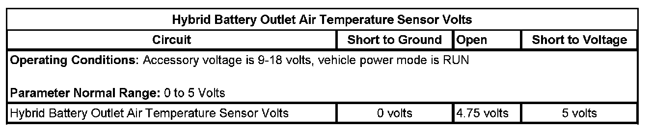 - Hybrid Battery Temperature Outlet Circuit Signal Performance