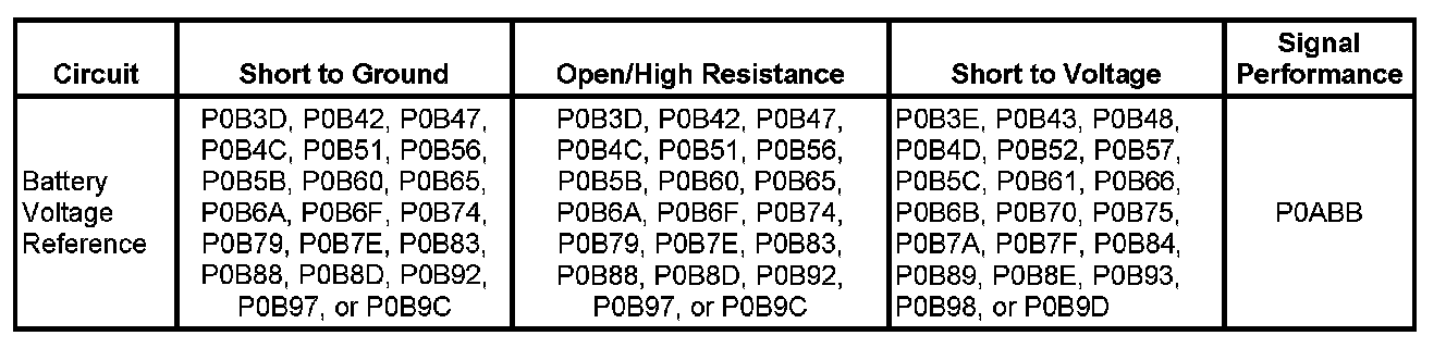 DTC P0B3E, P0B43, P0B48, P0B4D, P0B52, P0B57, P0B5C, P0B61, P0B66, P0B6B, P0B70, P0B75, P0B7A, P0B7F, P0B84, P0B89, P0B8E, P0B93, P0B98, or P0B9D