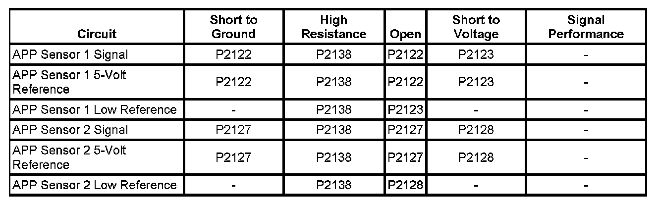 - Accelerator Pedal Position (APP) Sensor 2 Circuit High Voltage