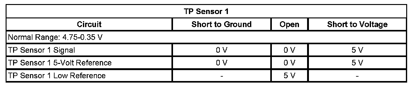 - Throttle Position (TP) Sensor 1 Circuit Low Voltage