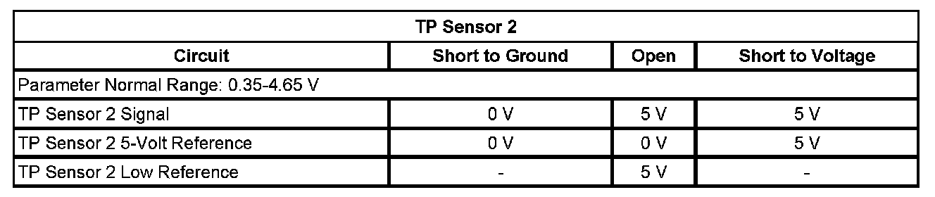 - Throttle Position (TP) Sensor 2 Circuit Low Voltage