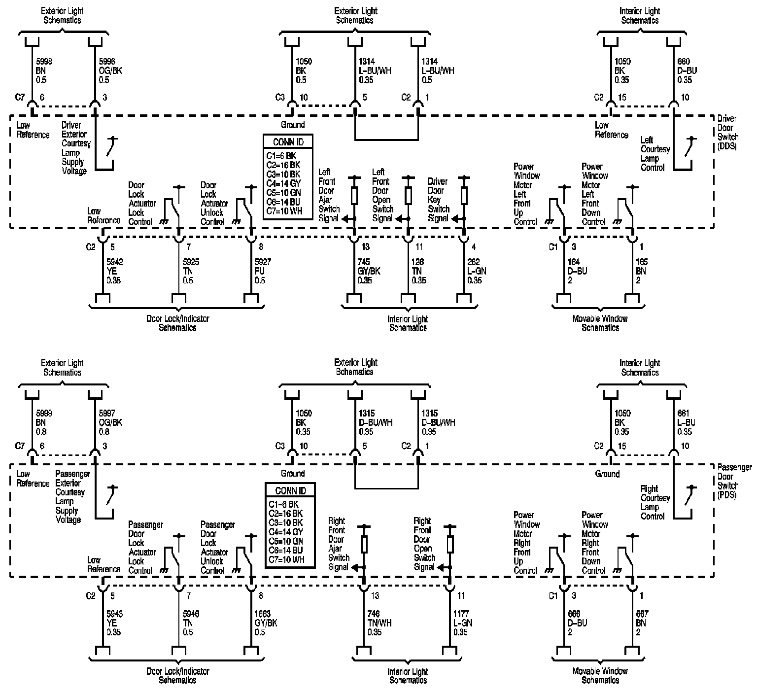 Locations: The locations for the Connectors, Grounds, Splices, and Grommets shown within these diagrams can be found via their numbers at Vehicle Locations. Locations