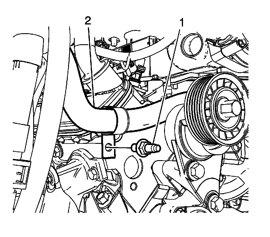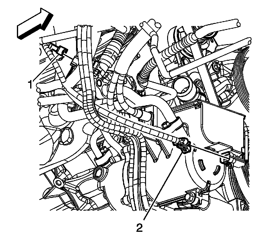 20. Remove the radiator vent inlet hose (2) from the air bleed pipe and reposition.
