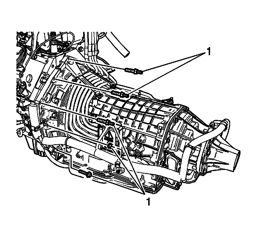 11. Install the transmission bolts/studs (1).