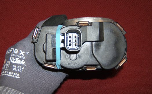 10. Turn over the throttle body and use a flathead screwdriver to remove the four remaining clips from the TP sensor cover. Discard the clips.