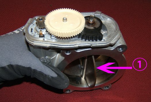 19. Grasp and hold the throttle body in the previously hand held upward position. Lightly depress the intermediate gear to verify that it is fully seated and the gears are engaged.