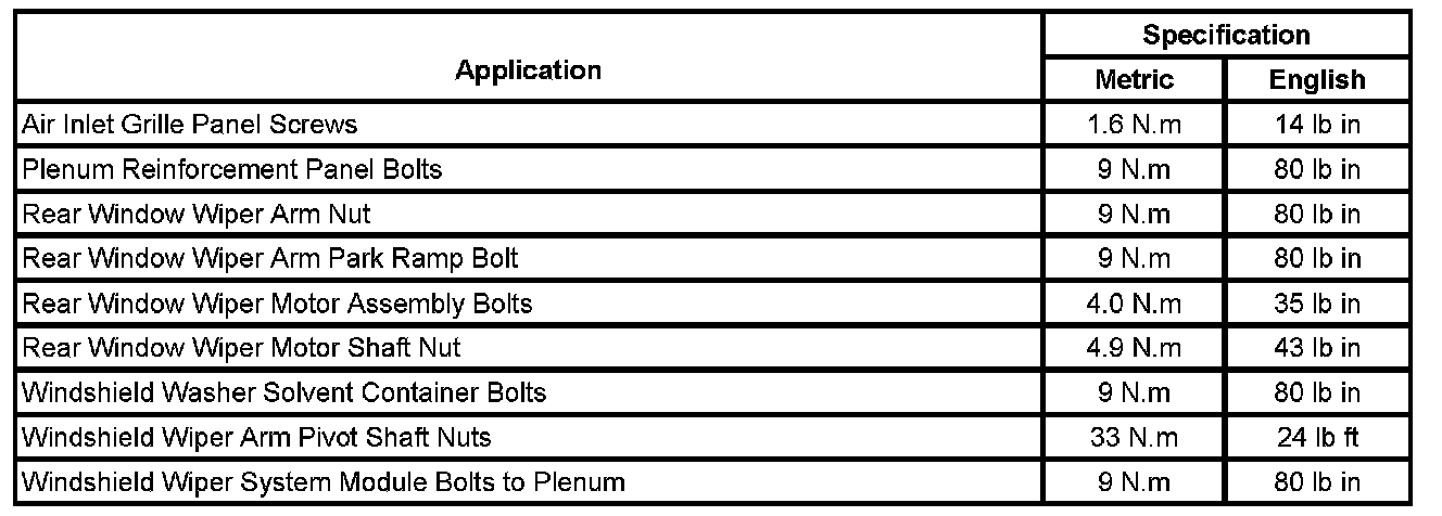 Wiper and Washer Systems: Specifications