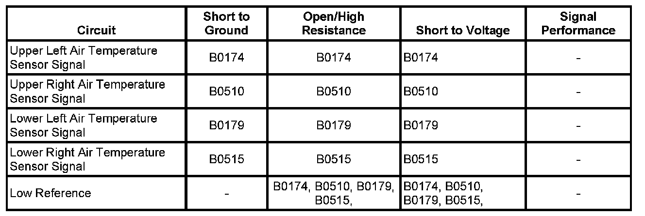 Important: If an air duct temperature sensor has an out of range condition caused by a short to voltage, short to ground, or an open/high resistance, the scan tool will display the same value: 39°F (4°C).