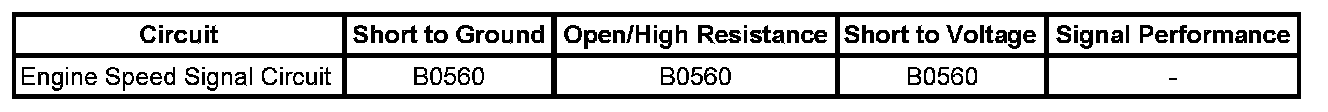 The instrument panel cluster (IPC) receives the engine speed information from the engine control module (ECM)/powertrain control module (PCM) through the engine speed signal circuit. The ECM/PCM converts the data from the engine speed sensor to a 2 pulses/engine revolution signal. The ECM/PCM also sends a class 2 message to the IPC indicating the engine speed. If the IPC determines there is a loss of the engine speed signal from the ECM/PCM due to a engine speed signal circuit malfunction, a DTC sets.