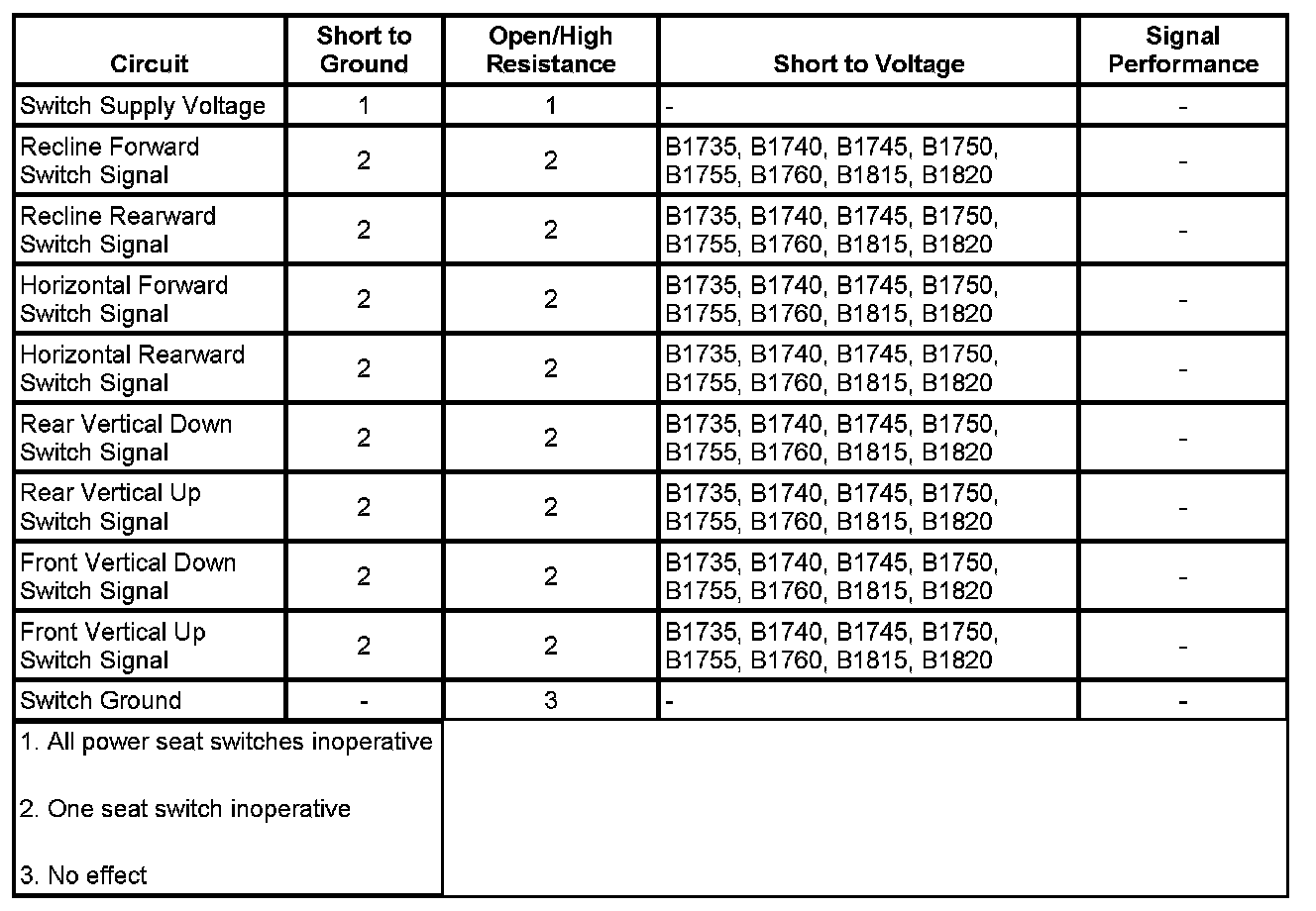 5. If all circuits test normal, test or replace the seat adjuster switch.