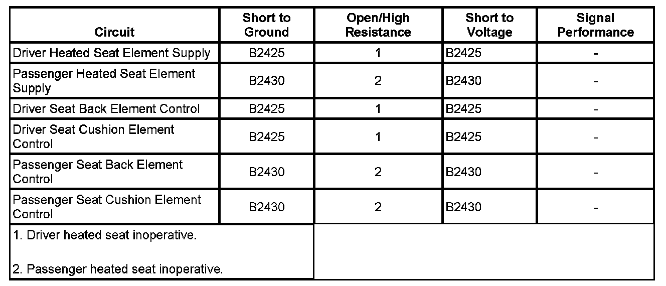 - Passenger Seat Heater Circuit