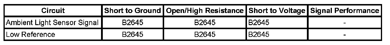5. If all circuits test normal, test or replace the ambient light sensor.