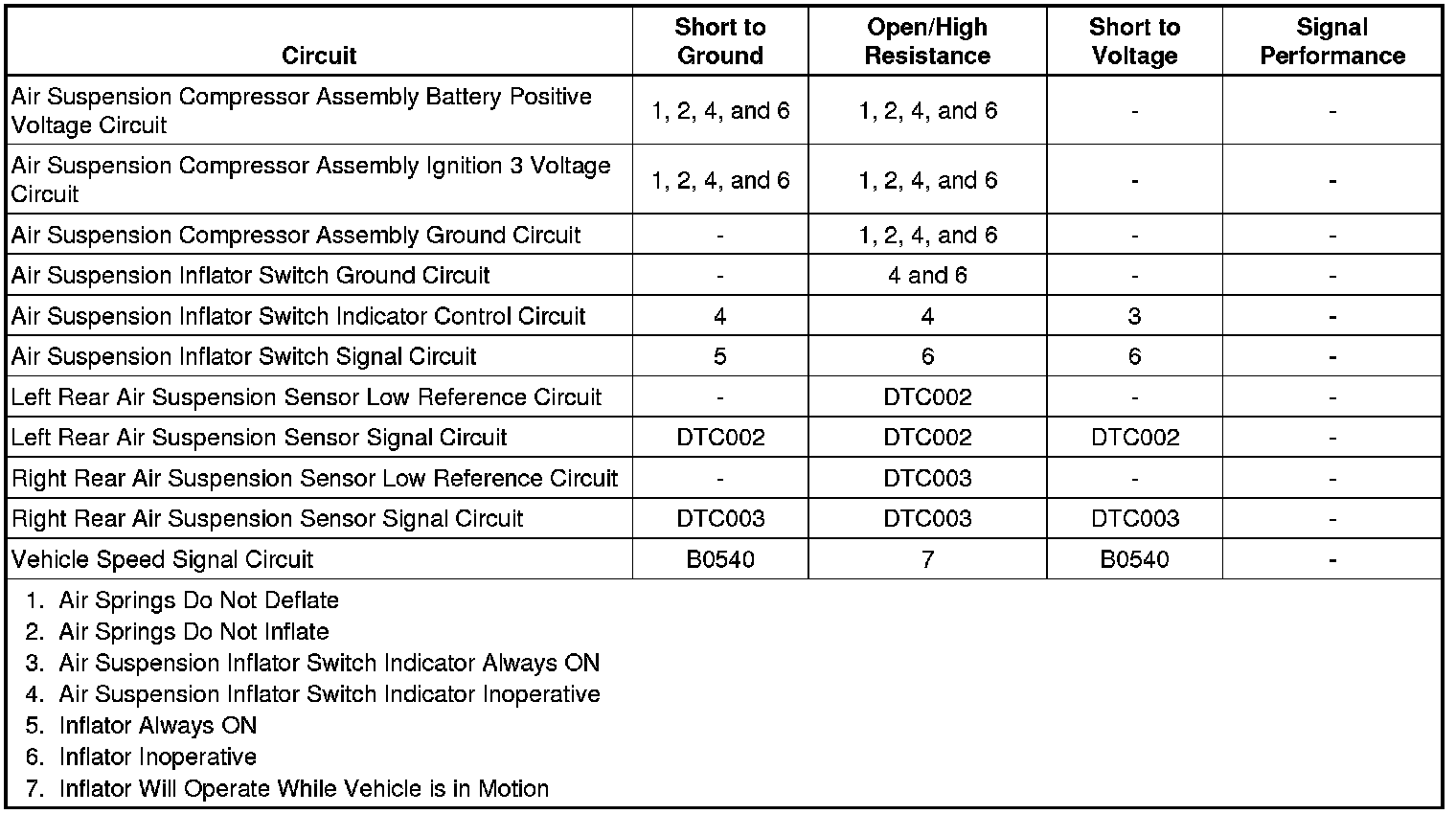 * If both air suspension sensor DTCs are set, the air suspension compressor assembly shall deactivate the compressor, corner solenoids, and exhaust solenoids. All leveling functions will be disabled. Inflator functions will not be disabled.