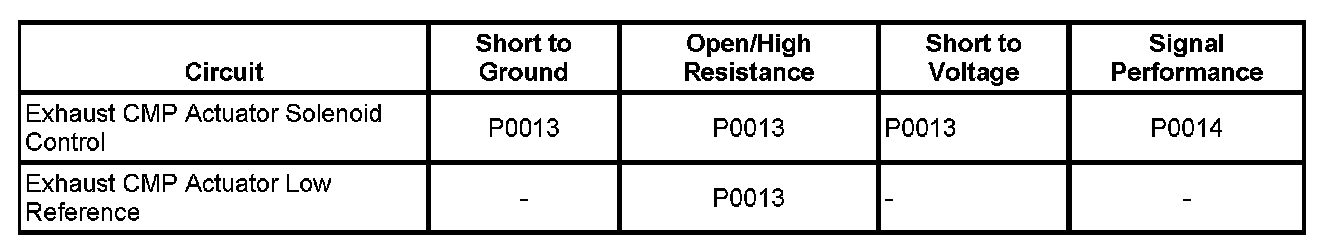 - Exhaust Camshaft Position (CMP) Actuator Solenoid Control Circuit